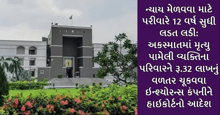 ન્યાય મેળવવા માટે પરીવારે 12 વર્ષ સુધી લડત લડી: અકસ્માતમાં મૃત્યુ પામેલી વ્યક્તિના પરિવારને રૂ.32 લાખનું વળતર ચૂકવવા ઇન્શ્યોરન્સ કંપનીને હાઇકોર્ટનો આદેશ