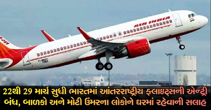 22થી 29 માર્ચ સુધી ભારતમાં આંતરરાષ્ટ્રીય ફ્લાઇટ્સની એન્ટ્રી બંધ, બાળકો અને મોટી ઉંમરના લોકોને ઘરમાં રહેવાની સલાહ