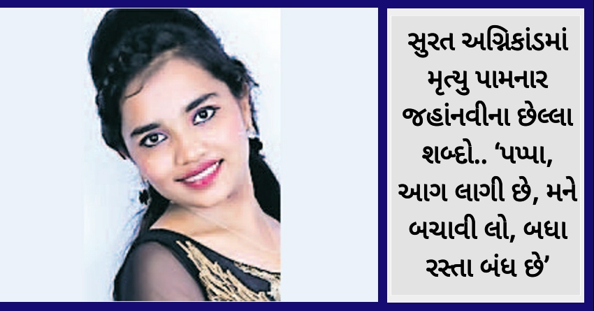 સુરત અગ્નિકાંડમાં મૃત્યુ પામનાર જહાંનવીના છેલ્લા શબ્દો.. ‘પપ્પા, આગ લાગી છે, મને બચાવી લો, બધા રસ્તા બંધ છે’