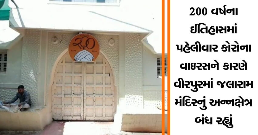 200 વર્ષના ઈતિહાસમાં પહેલીવાર કોરોના વાઇરસને કારણે વીરપુરના જલારામ મંદિરનું અન્નક્ષેત્ર બંધ રહ્યું