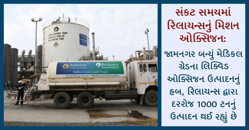 સંકટ સમયમાં રિલાયન્સનું મિશન ઓક્સિજન: જામનગર બન્યું મેડિકલ ગ્રેડના લિક્વિડ ઓક્સિજન ઉત્પાદનનું હબ, રિલાયન્સ દ્વારા દરરોજ 1000 ટનનું ઉત્પાદન થઈ રહ્યું છે