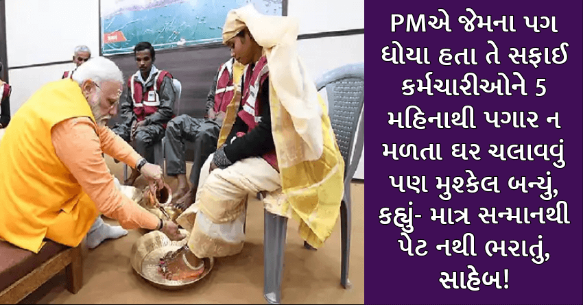 PMએ જેમના પગ ધોયા હતા તે સફાઈ કર્મચારીઓને 5 મહિનાથી પગાર ન મળતા ઘર ચલાવવું પણ મુશ્કેલ બન્યું, કહ્યું- માત્ર સન્માનથી પેટ નથી ભરાતું, સાહેબ!