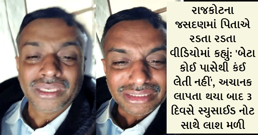 રાજકોટના જસદણમાં પિતાએ રડતા રડતા વીડિયોમાં કહ્યું: ‘બેટા કોઈ પાસેથી કંઈ લેતી નહીં’, અચાનક લાપતા થયા બાદ 3 દિવસે સ્યુસાઈડ નોટ સાથે લાશ મળી