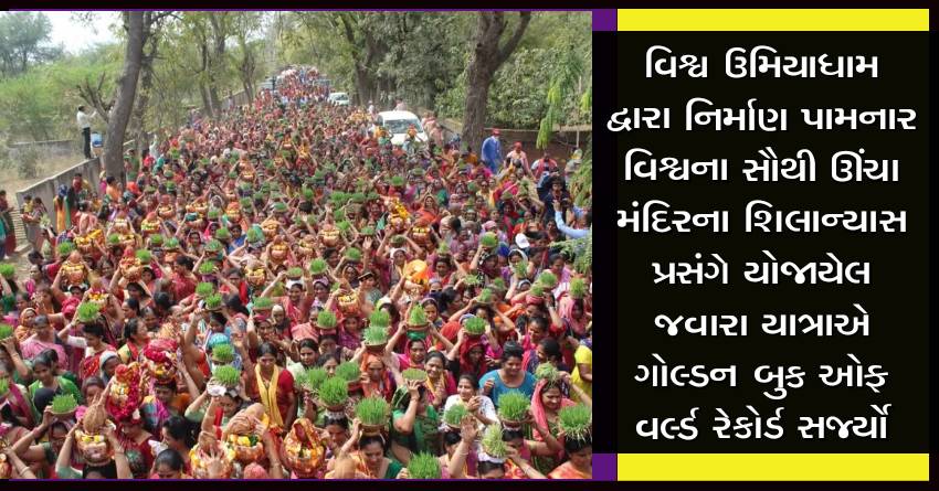 વિશ્વ ઉમિયાધામ દ્વારા નિર્માણ પામનાર વિશ્વના સૌથી ઊંચા મંદિરના શિલાન્યાસ પ્રસંગે યોજાયેલ જવારા યાત્રાએ ગોલ્ડન બુક ઓફ વર્લ્ડ રેકોર્ડ સર્જ્યો