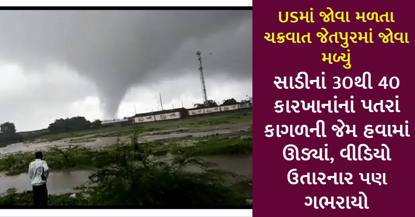 USમાં જોવા મળતા ચક્રવાત જેતપુરમાં જોવા મળ્યું, સાડીનાં 30થી 40 કારખાનાંનાં પતરાં કાગળની જેમ હવામાં ઊડ્યાં, વીડિયો ઉતારનાર પણ ગભરાયો