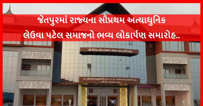 જેતપુરમાં ધોરાજી રોડ ઉપર પુરા ગુજરાતમાં સૌથી વિશાળ અને તેમજ આધુનિક સુવિધા જનક લેઉવા પટેલ સમાજ બની ચુક્યો છે ત્યારે તેનો લોકાર્પણ કાર્યક્રમ તા. 19 અને રવિવારે 50 હજાર જનમેદની વચ્ચે યોજાશે.