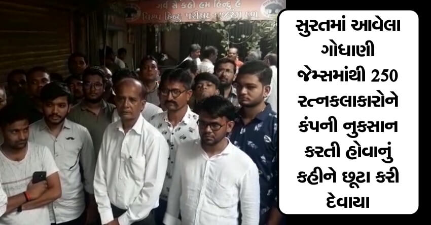 સુરતમાં આવેલા ગોધાણી જેમ્સમાંથી 250 રત્નકલાકારોને કંપની નુકસાન કરતી હોવાનું કહીને છૂટા કરી દેવાયા