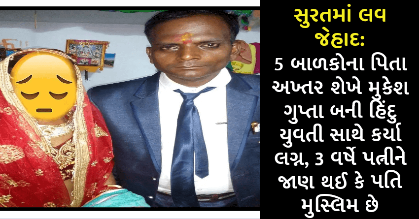 સુરતમાં લવ જેહાદ: 5 બાળકોના પિતા અખ્તર શેખે મુકેશ ગુપ્તા બની હિંદુ યુવતી સાથે કર્યા લગ્ન, 3 વર્ષે પત્નીને જાણ થઈ કે પતિ મુસ્લિમ છે