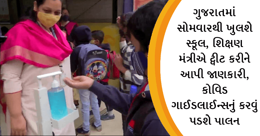ગુજરાતમાં સોમવારથી ખુલશે સ્કૂલ, શિક્ષણ મંત્રીએ ટ્વીટ કરીને આપી જાણકારી, કોવિડ ગાઈડલાઈન્સનું કરવું પડશે પાલન