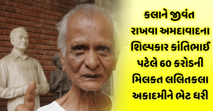 કલાને જીવંત રાખવા અમદાવાદના શિલ્પકાર કાંતિભાઈ પટેલે 60 કરોડની મિલકત લલિતકલા અકાદમીને ભેટ ધરી