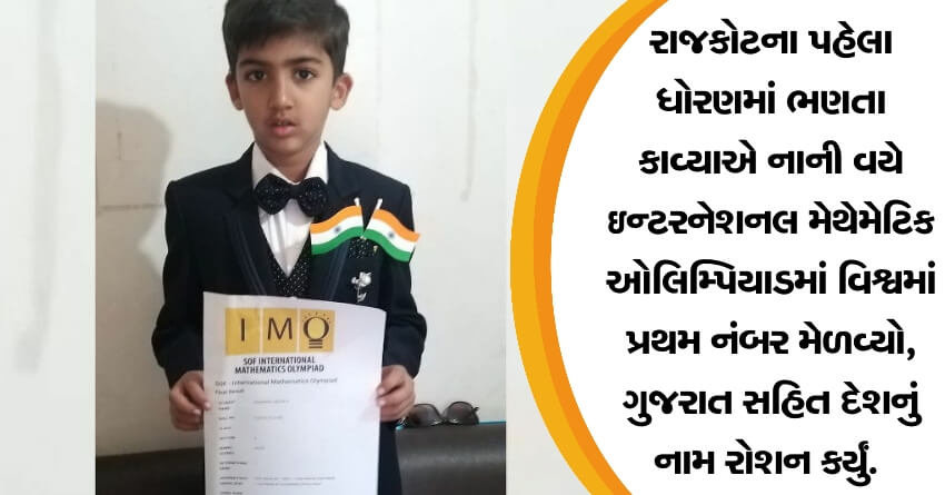 રાજકોટના પહેલા ધોરણમાં ભણતા કાવ્યાએ નાની વયે ઇન્ટરનેશનલ મેથેમેટિક ઓલિમ્પિયાડમાં વિશ્વમાં પ્રથમ નંબર મેળવ્યો, ગુજરાત સહિત દેશનું નામ રોશન કર્યું