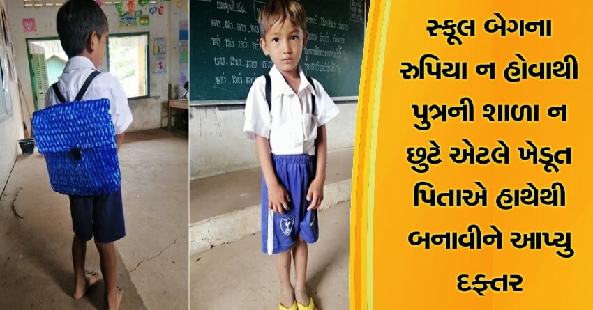 સ્કૂલ બેગના રુપિયા ન હોવાથી પુત્રની શાળા ન છુટે એટલે ખેડૂત પિતાએ હાથેથી બનાવીને આપ્યુ દફ્તર