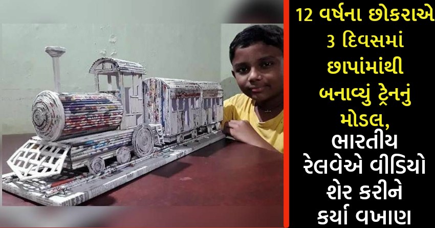 12 વર્ષના છોકરાએ 3 દિવસમાં છાપાંમાંથી બનાવ્યું ટ્રેનનું મોડલ, ભારતીય રેલવેએ વીડિયો શેર કરીને કર્યા વખાણ