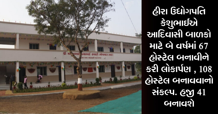 હીરા ઉદ્યોગપતિ કેશુભાઈએ આદિવાસી બાળકો માટે બે વર્ષમાં 67 હોસ્ટેલ બનાવીને કરી લોકાર્પણ , 108 હોસ્ટેલ બનાવવાનો સંકલ્પ. હજી 41 બનાવશે