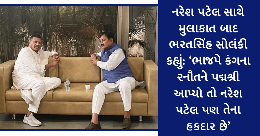 નરેશ પટેલ સાથે મુલાકાત બાદ ભરતસિંહ સોલંકી કહ્યું: ‘ભાજપે કંગના રનૌતને પદ્મશ્રી આપ્યો તો નરેશ પટેલ પણ તેના હકદાર છે’
