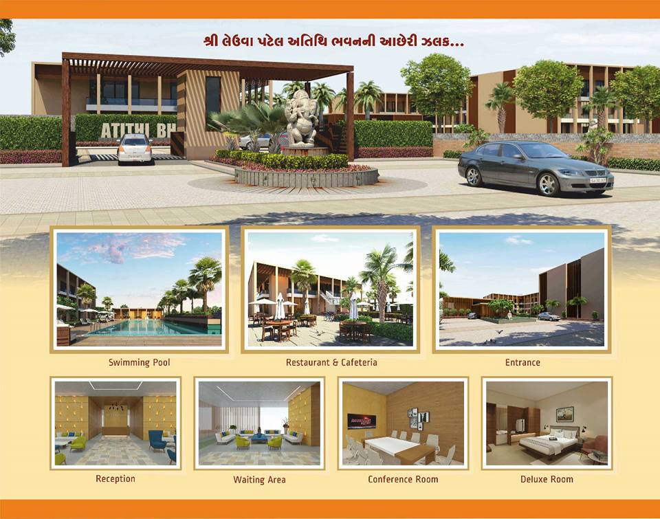 લેઉવા પટેલ અતિથિ ભવન અતિઆધુનિક કક્ષાનું બનાવવામાં આવશે. અંદાજે ૧ લાખ સ્કવેર ફૂટનું બાંધકામ થશે. બાંધકામ બે તબક્કામાં કરવામાં આવશે. પ્રથમ ચરણમાં રૂમ, બેન્કવેટ હોલ અને ભોજનાલયનું નિર્માણ કરવામાં આવશે.