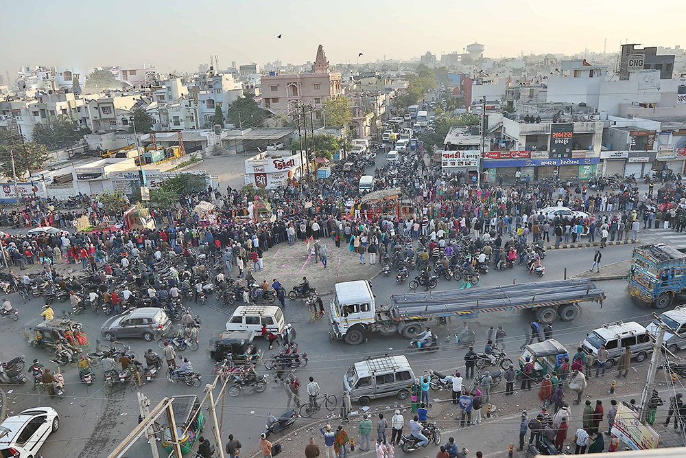 રાજકોટના રેસકોર્સથી કિસાનપરા, મહિલા કોલેજ અન્ડરબ્રિજથી કેકેવી ચોક થઈ ગોંડલ રોડ ચોકડી સુધીનો ડાબી બાજુનો રોડ શોભાયાત્રા માટે રખાયો હતો. જ્યારે જમણી બાજુના રોડ પર બન્ને બાજુથી વાહનોની અવર-જવર થઈ શકતી હતી. તેવી જ રીતે ગોંડલ રોડ ચોકડીથી છેક જેતપુર સુધી ડાબી બાજુનો હાઈ-વે શોભાયાત્રા માટે વન-વે જાહેર કરાયો હતો.