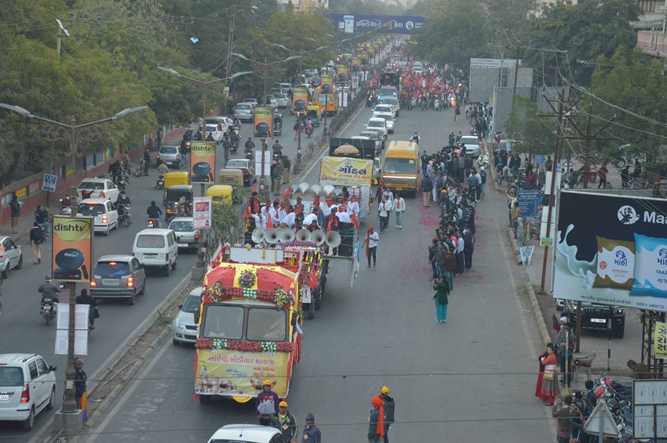 પહેલું વાહન ગોંડલ જ્યારે છેલ્લું વાહન રાજકોટમાં, આવો હતો માં ખોડલની શોભાયાત્રા નો નઝારો