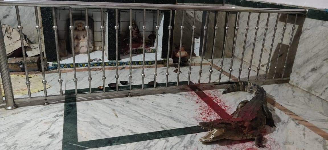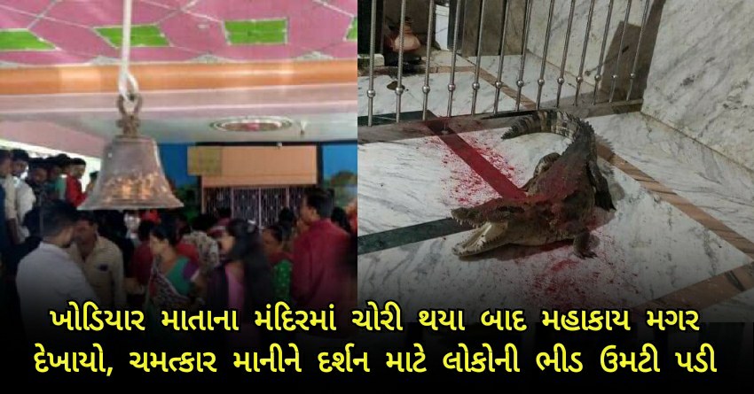 ખોડિયાર માતાના મંદિરમાં ચોરી થયા બાદ મહાકાય મગર દેખાયો, ચમત્કાર માનીને દર્શન માટે લોકોની ભીડ ઉમટી પડી