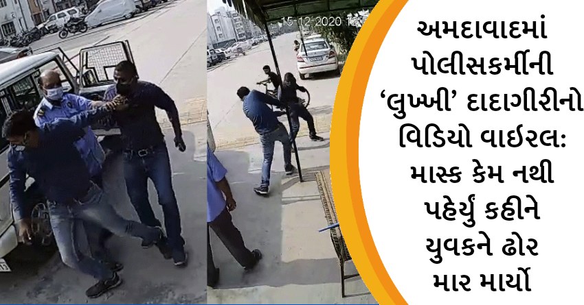 અમદાવાદમાં પોલીસકર્મીની ‘લુખ્ખી’ દાદાગીરીનો વિડિયો વાઇરલ: માસ્ક કેમ નથી પહેર્યું કહીને યુવકને ઢોર માર માર્યો
