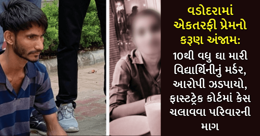 વડોદરામાં એકતરફી પ્રેમનો કરૂણ અંજામ: 10થી વધુ ઘા મારી વિદ્યાર્થિનીનું મર્ડર, આરોપી ઝડપાયો, ફાસ્ટટ્રેક કોર્ટમાં કેસ ચલાવવા પરિવારની માગ