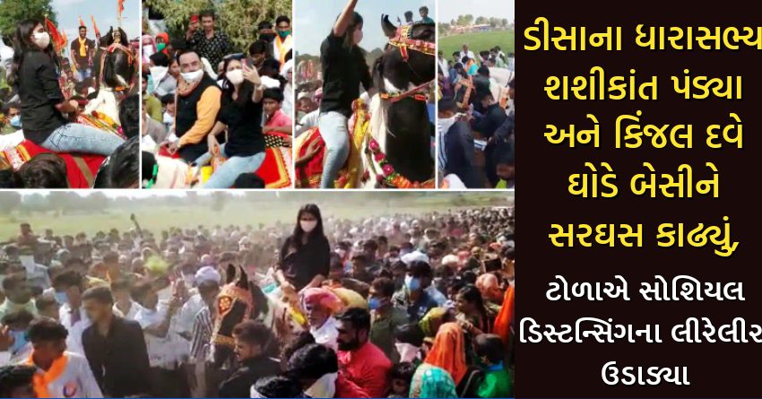 ડીસાના ધારાસભ્ય શશીકાંત પંડ્યા અને કિંજલ દવે ઘોડે બેસીને સરઘસ કાઢ્યું, ટોળાએ સોશિયલ ડિસ્ટન્સિંગના લીરેલીરા ઉડાડ્યા