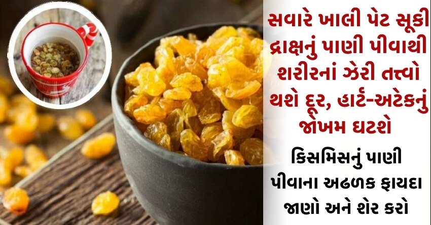 સવારે ખાલી પેટ સૂકી દ્રાક્ષનું પાણી પીવાથી શરીરનાં ઝેરી તત્ત્વો થશે દૂર, હાર્ટ-અટેકનું જોખમ પણ ઘટાડે છે, કિસમિસનું પાણી પીવાના અઢળક ફાયદા જાણો અને શેર કરો