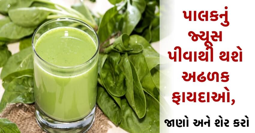 પાલકનું જ્યૂસ પીવાથી થશે અઢળક ફાયદાઓ, જાણો અને શેર કરો