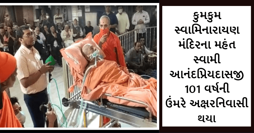 કુમકુમ સ્વામિનારાયણ મંદિરના મહંત સ્વામી આનંદપ્રિયદાસજી 101 વર્ષની ઉંમરે અક્ષરનિવાસી થયા
