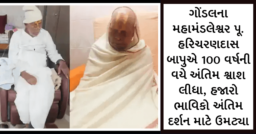 ગોંડલના મહામંડલેશ્વર પૂ. હરિચરણદાસ બાપુએ 100 વર્ષની વયે અંતિમ શ્વાશ લીધા, હજારો ભાવિકો અંતિમ દર્શન માટે ઉમટ્યા