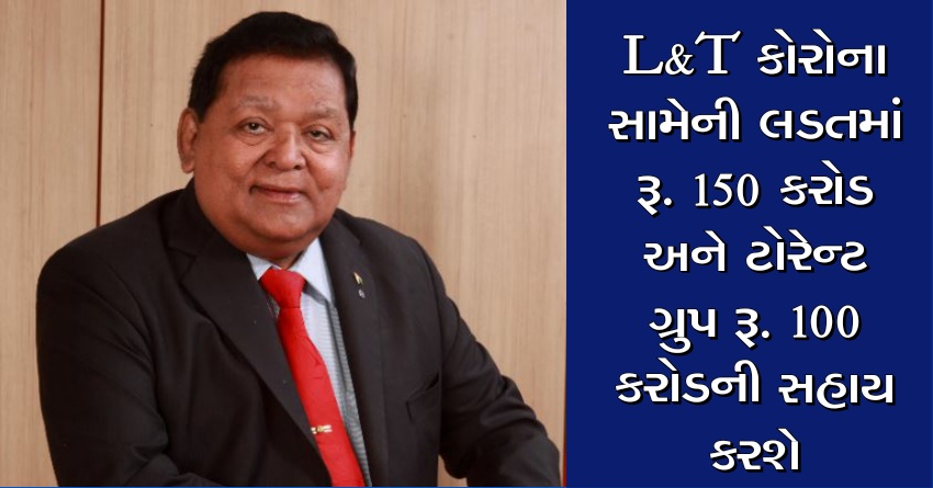 L&Tએ કોરોના સામેની લડતમાં રૂ. 150 કરોડ અને ટોરેન્ટ ગ્રુપ રૂ. 100 કરોડની સહાય કરશે