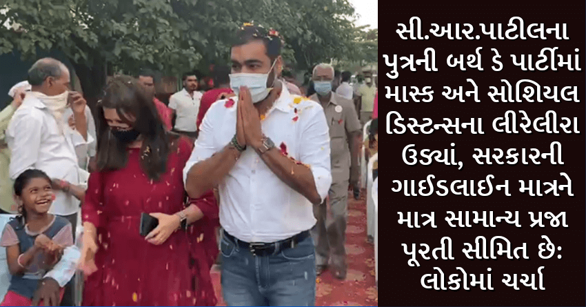 સી.આર.પાટીલના પુત્રની બર્થ ડે પાર્ટીમાં માસ્ક અને સોશિયલ ડિસ્ટન્સના લીરેલીરા ઉડ્યાં, સરકારની ગાઈડલાઈન માત્રને માત્ર સામાન્ય પ્રજા પૂરતી સીમિત છે: લોકોમાં ચર્ચા