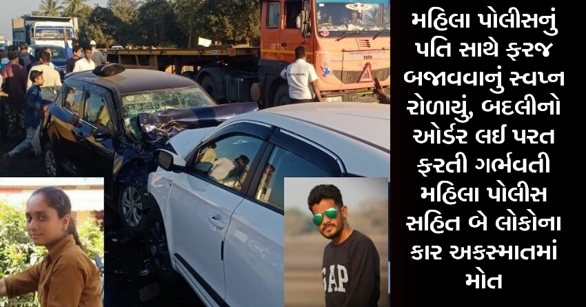 મહિલા પોલીસનું પતિ સાથે ફરજ બજાવવાનું સ્વપ્ન રોળાયું, બદલીનો ઓર્ડર લઈ પરત ફરતી ગર્ભવતી મહિલા પોલીસ સહિત બે લોકોના કાર અકસ્માતમાં મોત