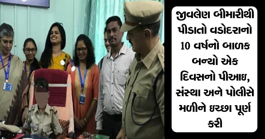 જીવલેણ બીમારીથી પીડાતો વડોદરાનો 10 વર્ષનો બાળક બન્યો એક દિવસનો પીઆઇ, સંસ્થા અને પોલીસે મળીને ઇચ્છા પૂર્ણ કરી