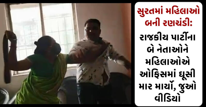 સુરતમાં મહિલાઓ બની રણચંડી: રાજકીય પાર્ટીના બે નેતાઓને મહિલાઓએ ઓફિસમાં ઘૂસી માર માર્યો, જુઓ વીડિયો