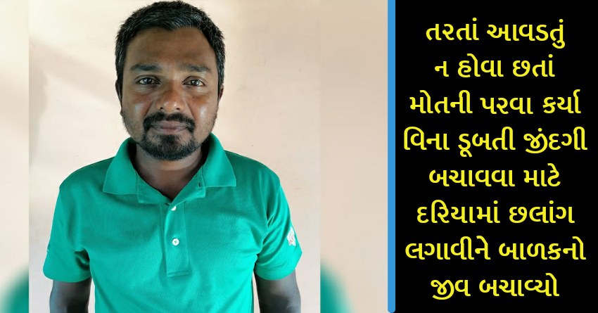 તરતાં આવડતું ન હોવા છતાં મોતની પરવા કર્યા વિના ડૂબતી જીંદગી બચાવવા માટે દરિયામાં છલાંગ લગાવીને બાળકનો જીવ બચાવ્યો