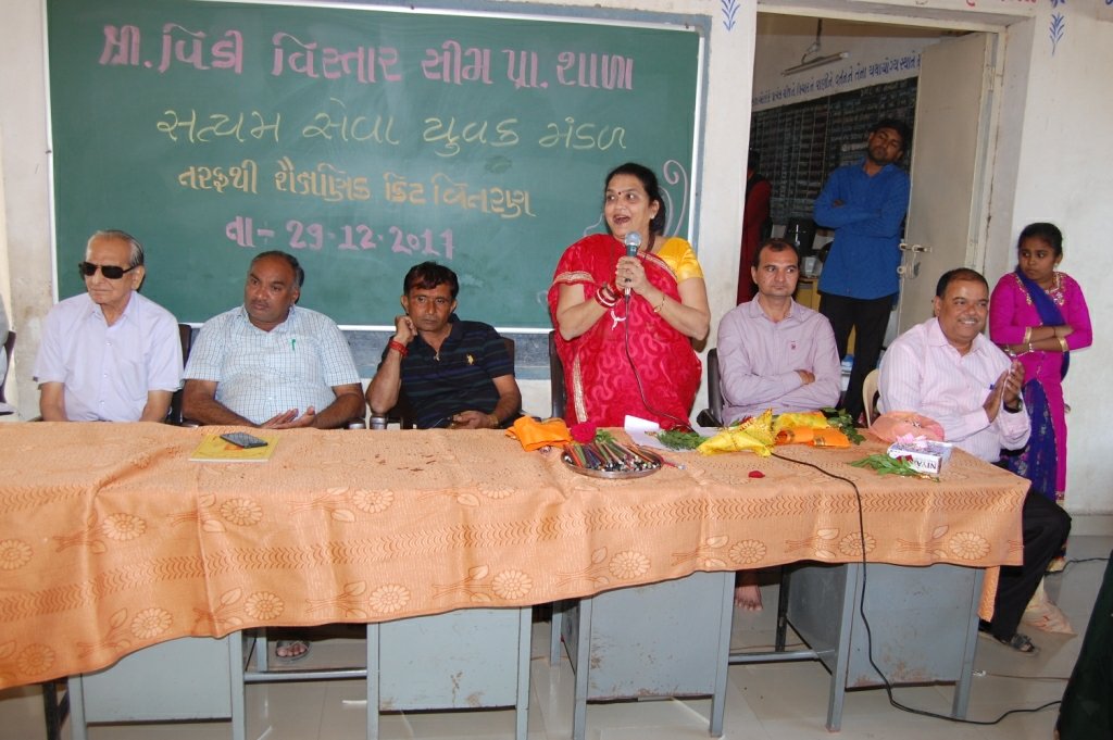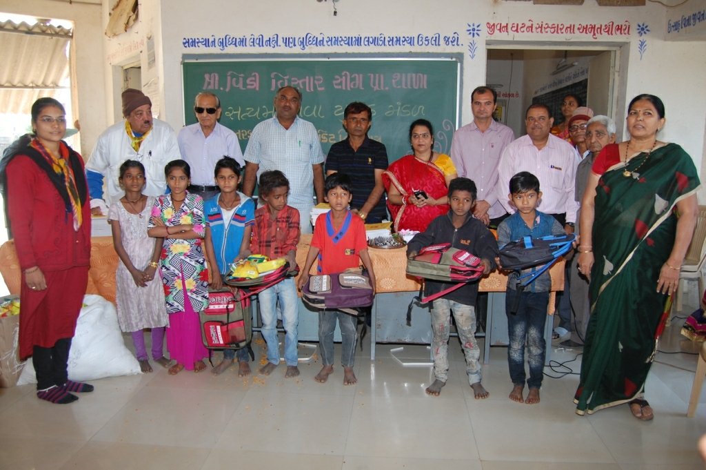 જૂનાગઢ:- જૂનાગઢમાં ઝૂંપડપટ્ટીમાં રહી અને સિમ પ્રાથમિક શાળામાં અભ્યાસ કરતા ૪૦૦ બાળકોને સેવાભાવી સંસ્થા સત્યમ સેવા યુવક મંડળ અને જૂનાગઢ જિલ્લા લેઉવા પટેલ મહિલા મંડળ દ્વારા નાસ્તા અને શૈક્ષણિક કીટનું વિતરણ કરવામાં આવ્યુ હતું. મધ્યાહન ભોજન યોજના કેન્દ્રના સંચાલકોની હડતાળને લઈ શાળાના બાળકોને ભોજન મેળવવું મુશ્કેલ બનેલ. આવી મુશ્કેલી નિવારવા માટે જૂનાગઢના ખામધ્રોળ ખાતેના ૬૬ કૅ.વી. વિસ્તારમાં આવેલ વીડી વિસ્તાર સીમ પ્રાથમિક શાળા ખાતે સત્યમ સેવા યુવક મંડળનાં પ્રમુખ મનસુખભાઇ વાજા અને જૂનાગઢ જિલ્લા લેઉવા પટેલ મહિલા મંડળ દ્વારા સમૂહ લગ્નનાં પ્રણેતા હરસુખભાઈ વઘાસીયાના નેજા નીસચે નાસ્તા સાથે શૈક્ષણિક કીટ વિતરણનો કાર્યક્રમ યોજાયો હતો.