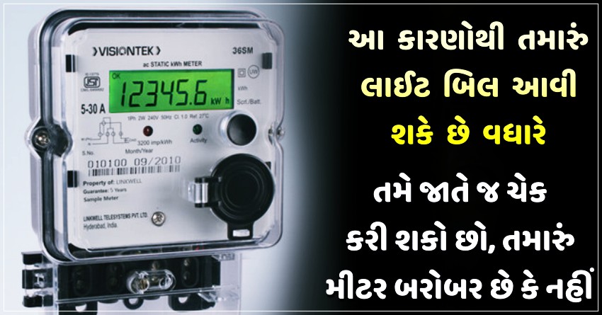 વીજળીનું મીટર યોગ્ય છે કે નહીં તે જાણવા માટે દરેક સાધનો બંધ કરો અને પછી એસી ચલાવો. જો એસી 1000 વૉટનું હશે તો 1 કલાકમાં મીટર પર 1 યૂનિટ વીજળી વપરાયેલી બતાવશે. જો એસી 2000 વૉટનું હશે તો વીજળીના મીટર પર 1 કલાકમાં 2 યૂનિટ વીજળી ખર્ચ થયેલી જેખાડશે. જો આવું થાય છે તો મીટર અને એસી બંને બરોબર છે. પણ જો મીટરમાં વધારે લાઇટ વપરાય છે તો તેનો અર્થ એ છે કે મીટર ફાસ્ટ ચાલી રહ્યું છે. નક્કી કરેલી લિમિટથી વીજળી વધારે વપરાય છે. આ વાતને આ રીતે જાતે જ ચેક કરી શકાય છે.