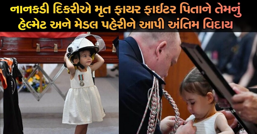 નાનકડી દિકરીએ મૃત ફાયર ફાઈટર પિતાને તેમનું હેલ્મેટ અને મેડલ પહેરી આપી અંતિમ વિદાય