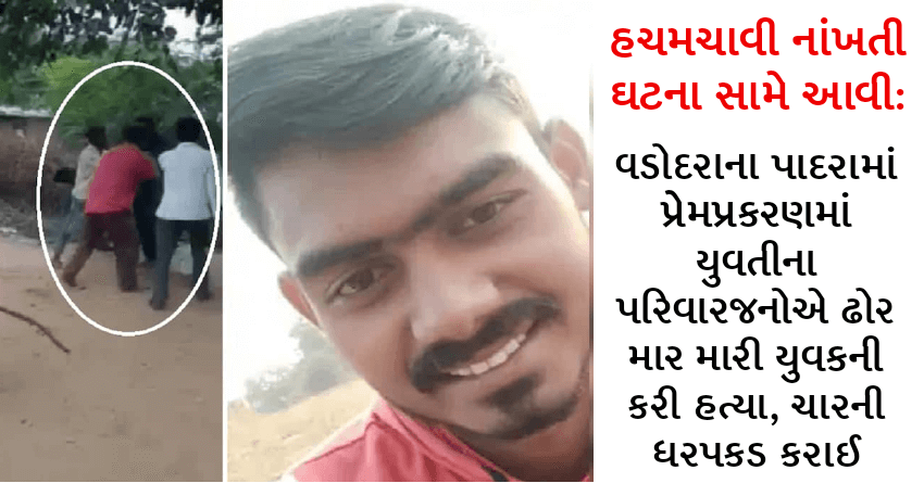 હચમચાવી નાંખતી ઘટના સામે આવી: વડોદરાના પાદરામાં પ્રેમપ્રકરણમાં યુવતીના પરિવારજનોએ ઢોર માર મારી યુવકની કરી હત્યા, ચારની ધરપકડ કરાઈ