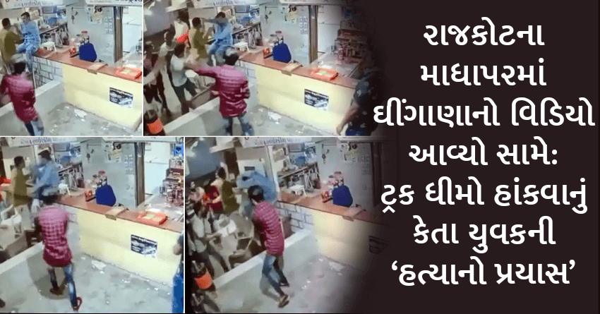 રાજકોટના માધાપરમાં ઘીંગાણાનો વિડિયો આવ્યો સામે: ટ્રક ધીમો હાંકવાનું કેતા યુવકની ‘હત્યાનો પ્રયાસ’