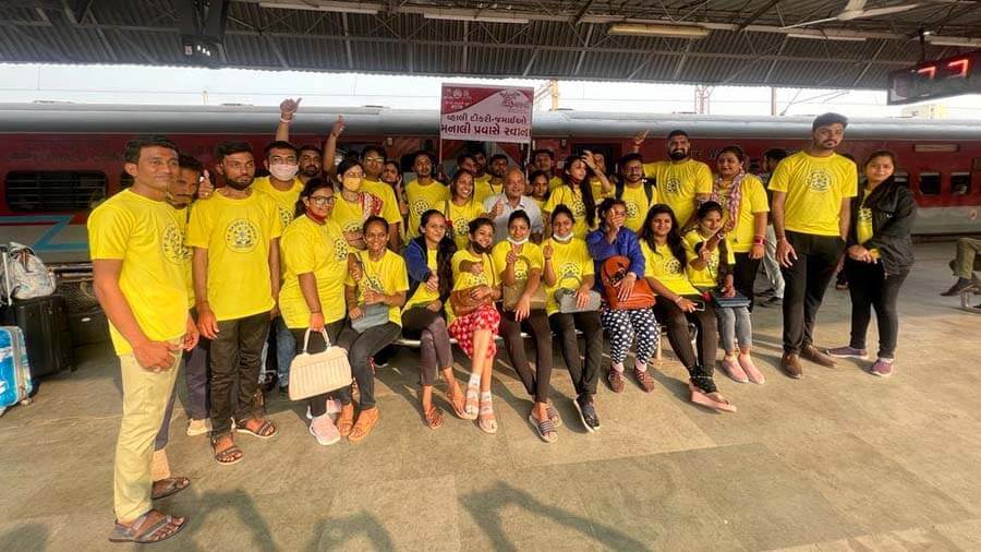 હનિમૂનના આયોજનના ભાગરૂપે ઘણા બધા યુગલનું ગ્રૂપ સુરતથી મનાલી જવા માટે રવાના થયું હતું. આ પ્રવાસની શરૂઆત પણ સવાણી ગ્રૂપ તરફથી કરી દેવામાં આવી હતી. મહેશ સવાણીએ આ ગ્રૂપને સુરત રેલવે સ્ટેશનથી આવજો કહ્યું હતું. આ સાથે ફોટો પણ ક્લિક કરાવ્યા હતા. મહેશ સવાણીએ આમાંથી કેટલાક ફોટો પોતાના ફેસબુક પેજ પર શેર કર્યા છે. આ તસવીરમાં દરેક યુગલ ખુશખાશલ જોવા મળ્યા છે. 40 દીકરીઓનું ગ્રૂપ સુરતથી મનાલી જવા માટે રવાના થયું હતું.