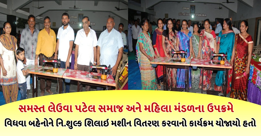 સમસ્ત લેઉવા પટેલ સમાજ અને મહિલા મંડળના ઉપક્રમે વિધવા બહેનોને નિ.શુલ્ક શિલાઇ મશીન વિતરણ