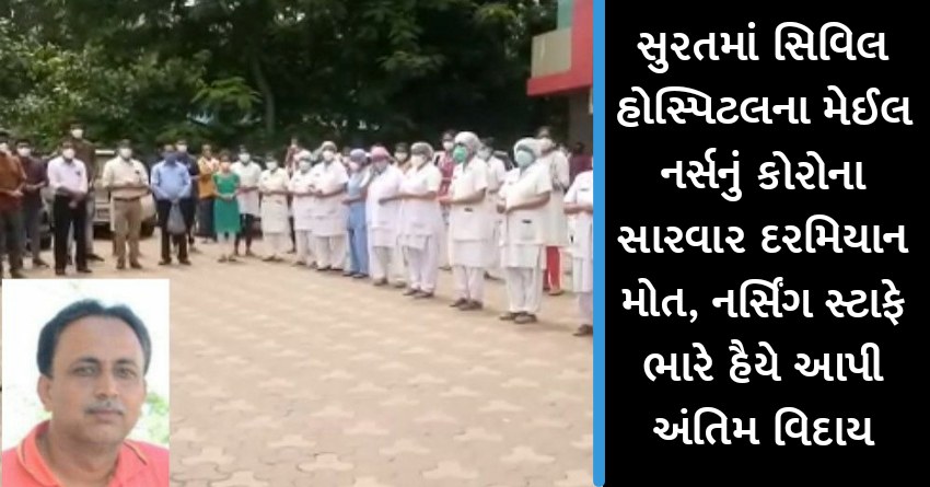 સુરતમાં સિવિલ હોસ્પિટલના મેઈલ નર્સનું કોરોના સારવાર દરમિયાન મોત, નર્સિંગ સ્ટાફે ભારે હૈયે આપી અંતિમ વિદાય