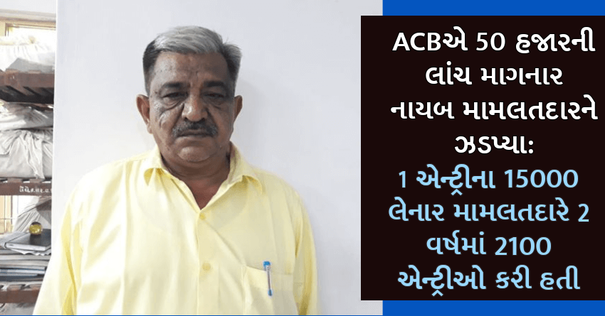 ACBએ 50 હજારની લાંચ માગનાર નાયબ મામલતદારને ઝડપ્યા: 1 એન્ટ્રીના 15000 લેનાર મામલતદારે 2 વર્ષમાં 2100 એન્ટ્રીઓ કરી હતી