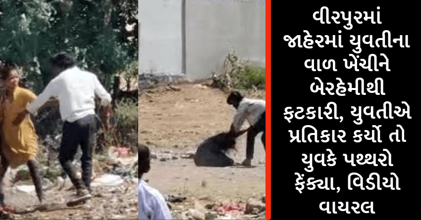 વીરપુરમાં જાહેરમાં યુવતીના વાળ ખેંચીને બેરહેમીથી ફટકારી, યુવતીએ પ્રતિકાર કર્યો તો યુવકે પથ્થરો ફેંક્યા, વિડીયો વાયરલ
