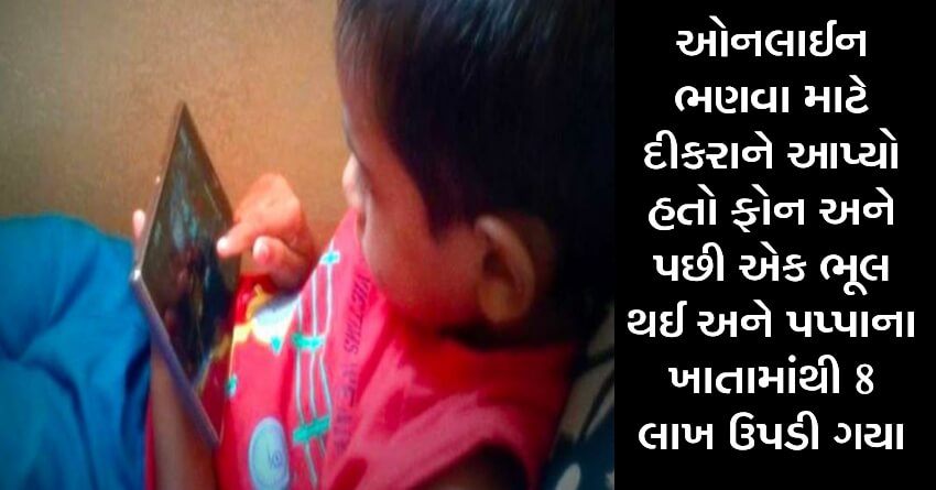 ઓનલાઈન ભણવા માટે દીકરાને આપ્યો હતો ફોન અને પછી એક ભૂલ થઈ અને પપ્પાના ખાતામાંથી 8 લાખ ઉપડી ગયા