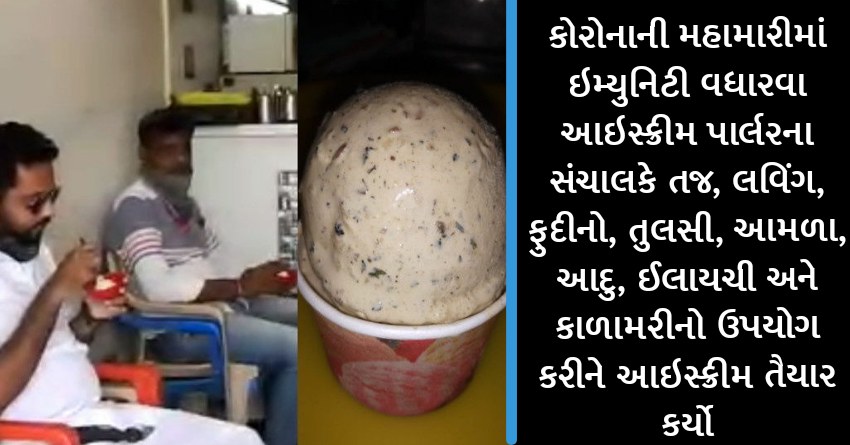 કોરોનાની મહામારીમાં ઇમ્યુનિટી વધારવા આઇસ્ક્રીમ પાર્લરના સંચાલકે તજ, લવિંગ, ફુદીનો, તુલસી, આમળા, આદુ, ઈલાયચી અને કાળામરીનો ઉપયોગ કરીને આઇસ્ક્રીમ તૈયાર કર્યો