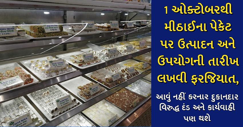 1 ઓક્ટોબરથી મીઠાઈના પેકેટ પર ઉત્પાદન અને ઉપયોગની તારીખ લખવી ફરજિયાત, આવું નહીં કરનાર દુકાનદાર વિરુદ્ધ દંડ અને કાર્યવાહી પણ થશે
