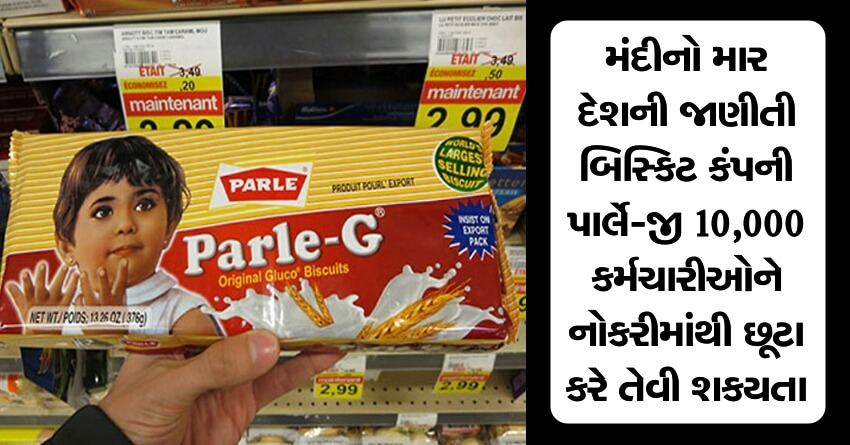 મંદીનો માર દેખાય રહ્યો છે. દેશની જાણીતી બિસ્કિટ કંપની પાર્લે-જી 10,000 કર્મચારીઓને નોકરીમાંથી છૂટા કરે તેવી શકયતા